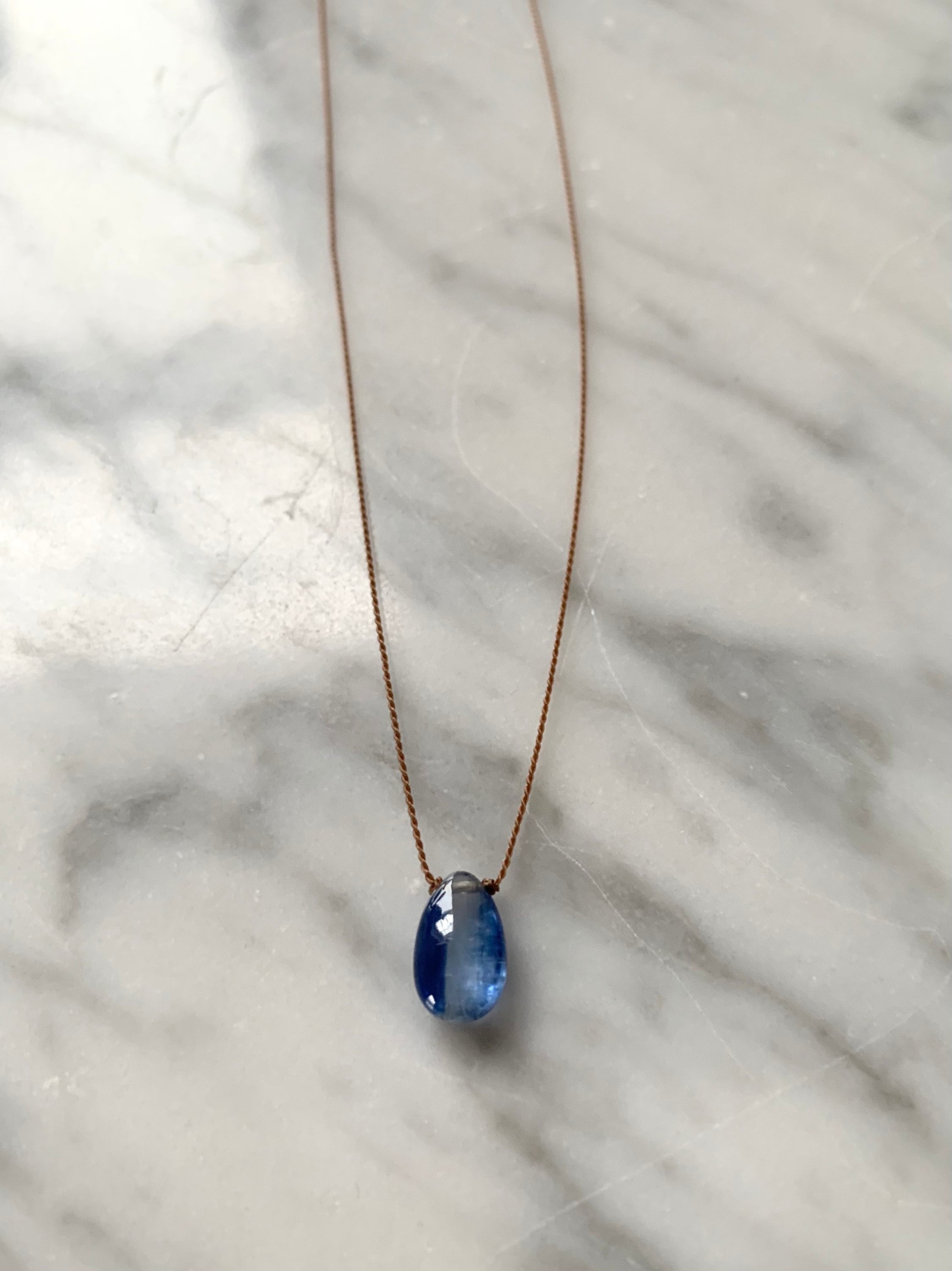 ✴︎H e a l i n g G e m D r o p N e c k l a c e ✴︎- Stunning natural polished BLUE KYANITE beads on sturdy light brown nylon cord necklace, finished with sterling silver clasp.