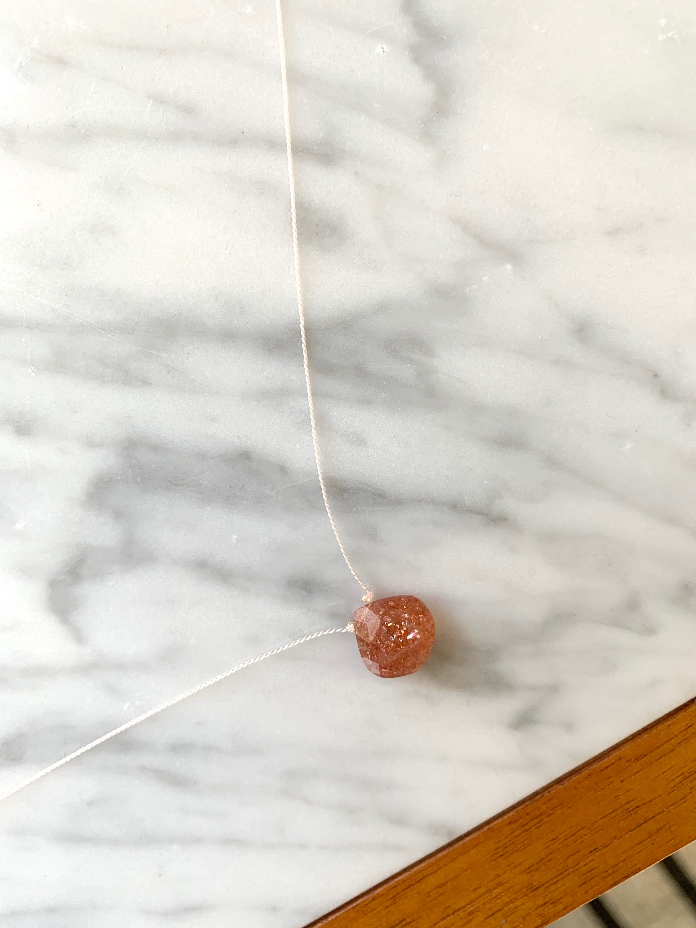 ✴︎H e a l i n g G e m D r o p N e c k l a c e ✴︎- Stunning AAA quality faceted SUNSTONE briolette bead on a light pink cord necklace, finished with sterling silver clasp.